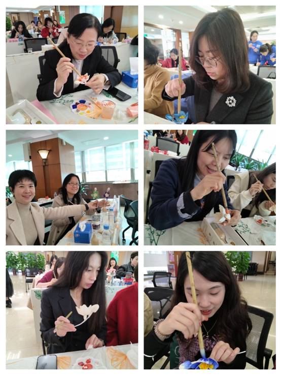 在巾幗非遺文化體驗——制作香薰通草花環(huán)節(jié)。在大新公司非遺文化研學特聘通草花繪制技藝傳承人顏康平老師的講授下,大家開拓視野,增長知識,在學史溯源了解通草花史記、功效和繪制工藝后,紛紛凝神握筆,巧心妙思動手制作香薰通草花,感受中華非遺文化的魅力。非遺通草,揚我非遺;香薰飄香,舒緩賦能。一朵朵精美的通草花在她們手中綻放,寓意著新時代紡織女工在傳承與創(chuàng)新中綻放光彩。