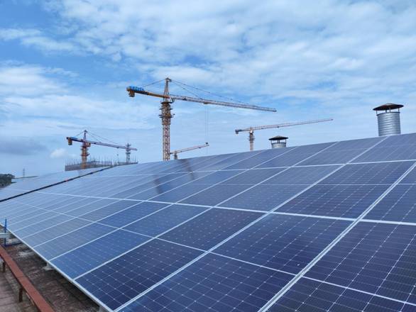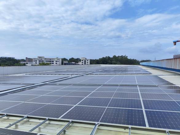在開展項目的過程中,煒鴻科技與虎頭新能源緊密合作,面對高溫酷暑與強雷雨天氣交替出現(xiàn)的天氣條件,雙方團隊以高度的責任感和專業(yè)精神,順利完成了對原有屋面彩鋼瓦的維修維護、加建全新一層彩鋼瓦、吊裝鋪設光伏組件、敷設線路至逆變器、匯流箱與電房等一系列關鍵節(jié)點工作。在數(shù)月的施工過程中,雙方團隊相互提醒,竭盡所能,履職盡責,充分彰顯了廣州輕工集團內部企業(yè)間強大的協(xié)同作戰(zhàn)能力。整個施工過程實現(xiàn)了零安全事故的目標。